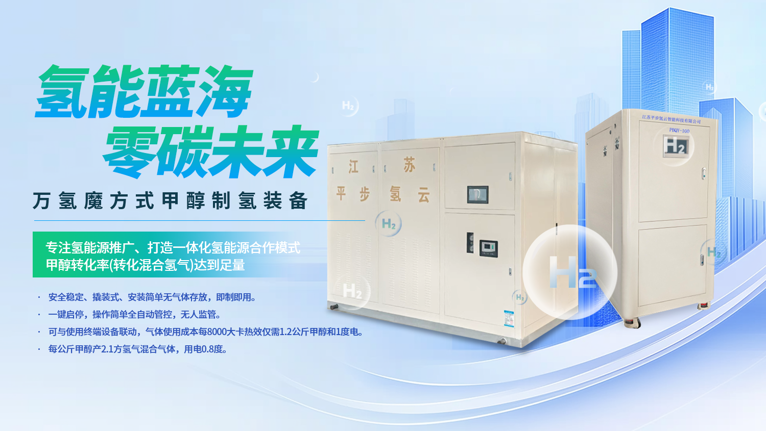 江苏平步氢云智能科技专注氢能源推广、打造一体化氢能源合作典范企业。专注氢能研发推广,提升能效,力促碳达峰,携手共创碳中和美好未来。 政策托底无风险,合规备案一路通,改造便捷安全稳,甲醇制氢放心用。